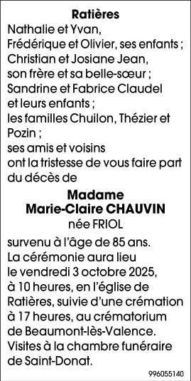 Madame Marie-Claire CHAUVIN née FRIOL