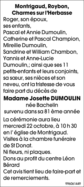 Décédée à Montrigaud (26350, France) le vendredi 17 octobre 2025 à l'âge de 80 ans