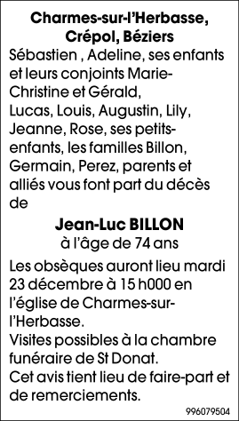 Décédé à Romans-sur-Isère (26100, France) le vendredi 19 décembre 2025 à l'âge de 74 ans