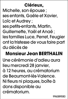 Décédé à Romans-sur-Isère (26100, France) le vendredi 16 janvier 2026 à l'âge de 80 ans