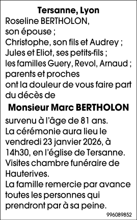 Décédé à Caluire-et-Cuire (69300, France) le lundi 19 janvier 2026 à l'âge de 80 ans